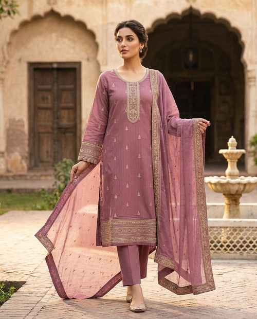 Our collection celebrates the fusion of traditional craftsmanship and modern silhouettes, offering premium unstitched and semi-stitched ensembles.